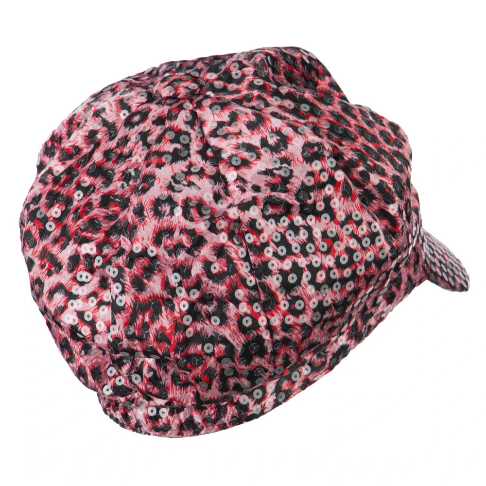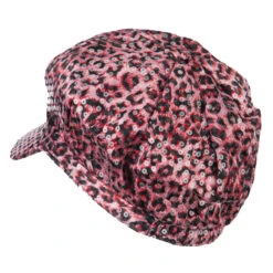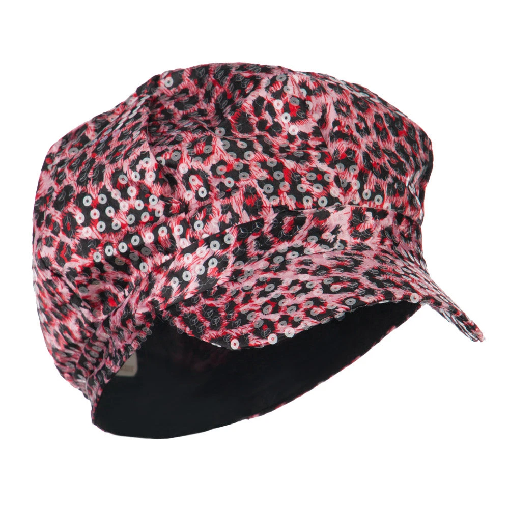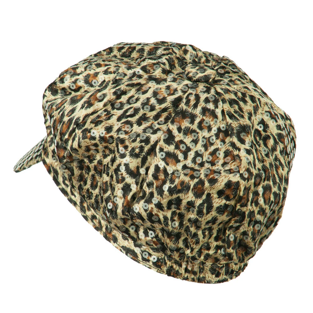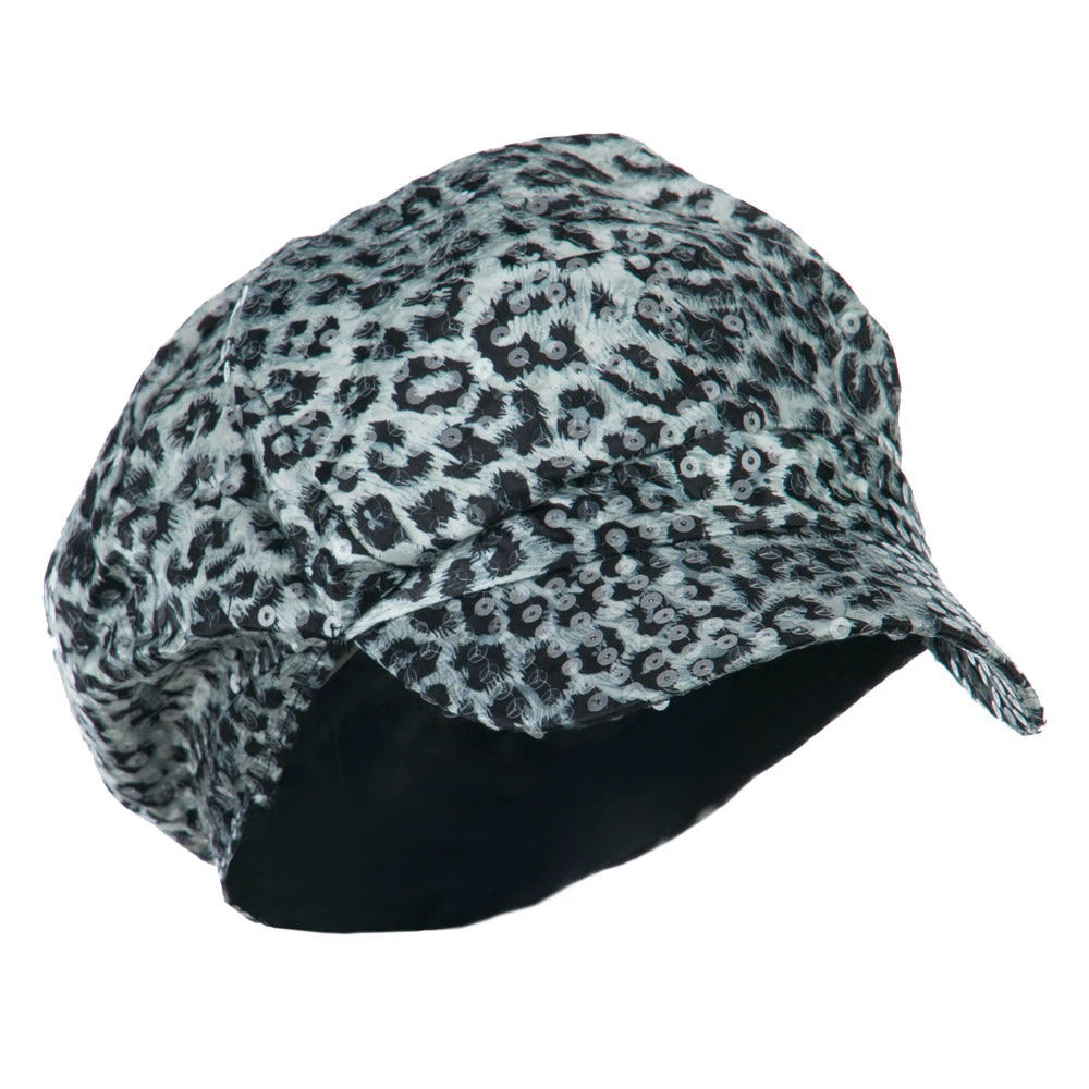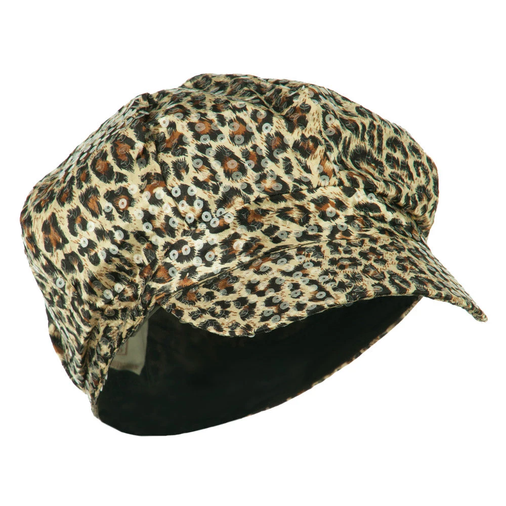 Animal print newsboy cap, with sequin detail for ladies.