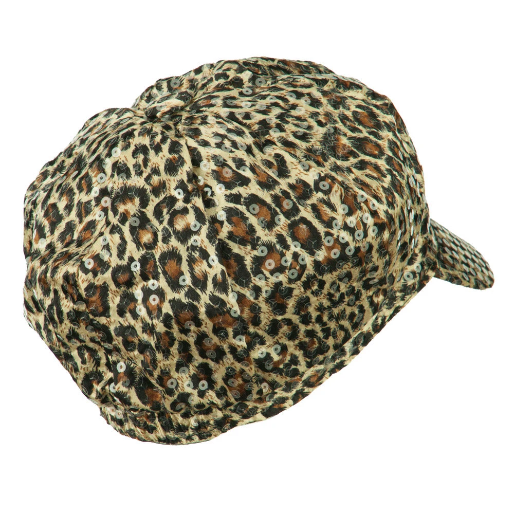 Sequin detailing across the cap with animal print.