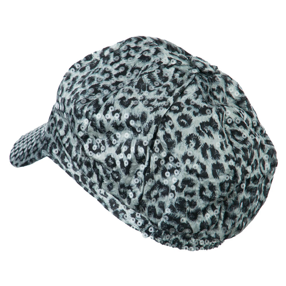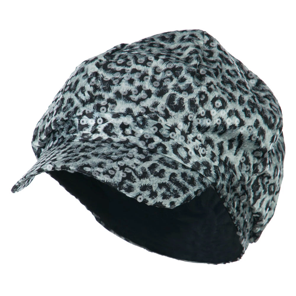 Animal Print Sequin Newsboy Cap