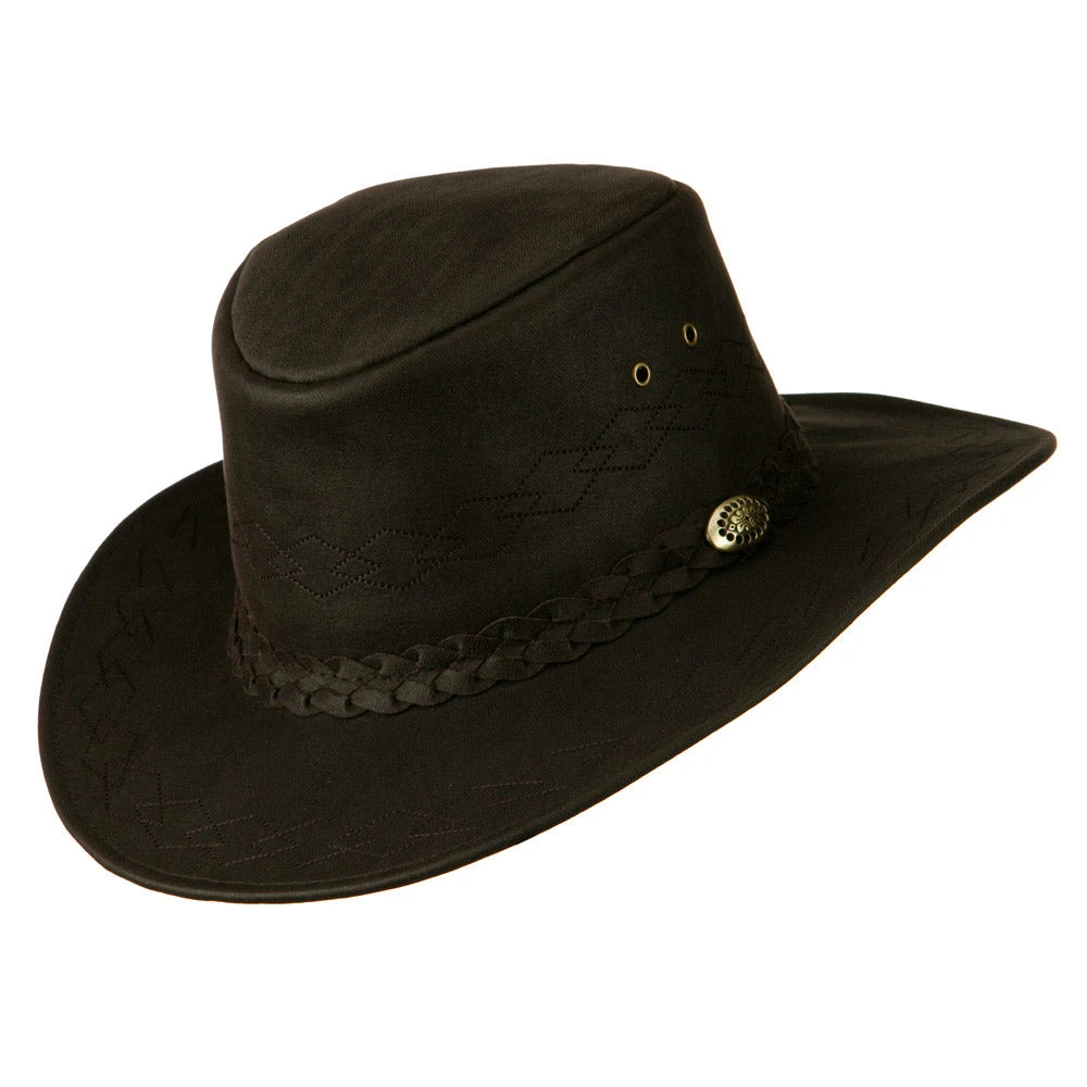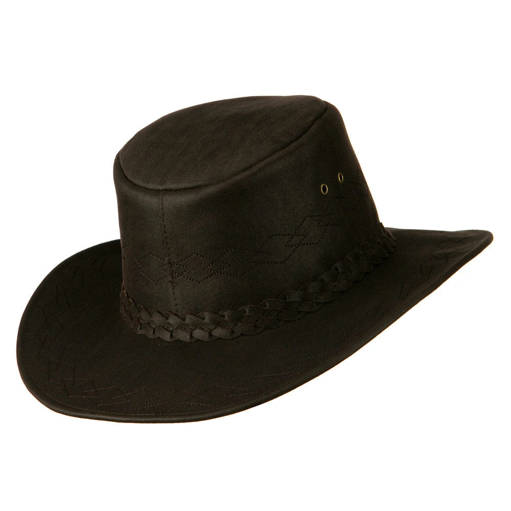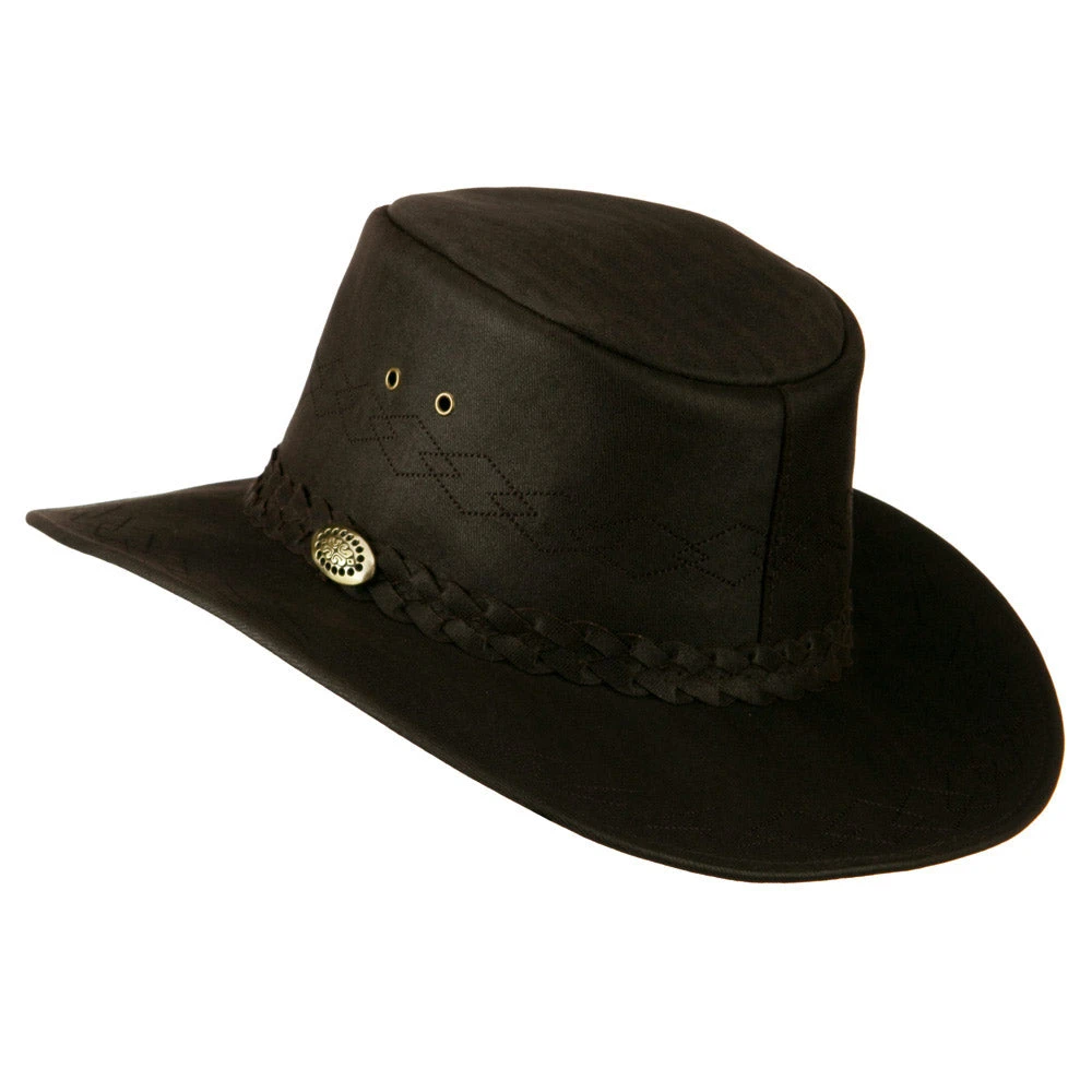 You’ll look like you’re straight out of a western film with our Diamond Design Unisex Wax Cotton Outdoor Hat. The hat has a slightly upturned brim on the sides and the whole hat is made with a sturdy waxed cotton material. The top is flat and there is no pinching of the crown, which results in a smooth and clean finish. There are two eyelets on each side of the crown and a pu leather band around the bottom of the crown with a gold accent button. For the finishing touch, stitched design is apparent throughout the crown and the brim of the hat. This is a great hat for any events or parties you may attend and will help you look your best.