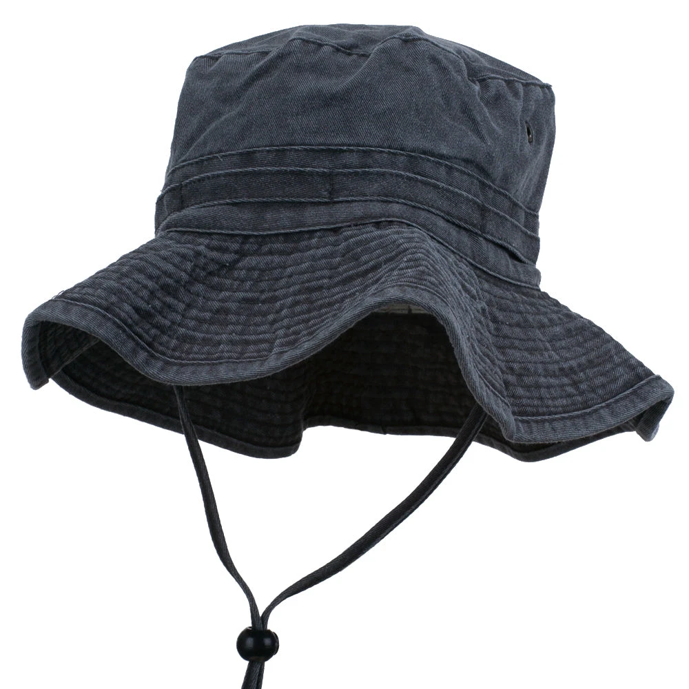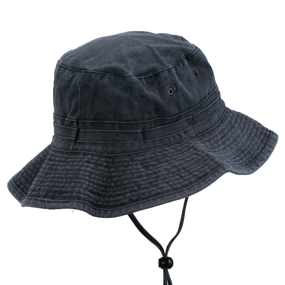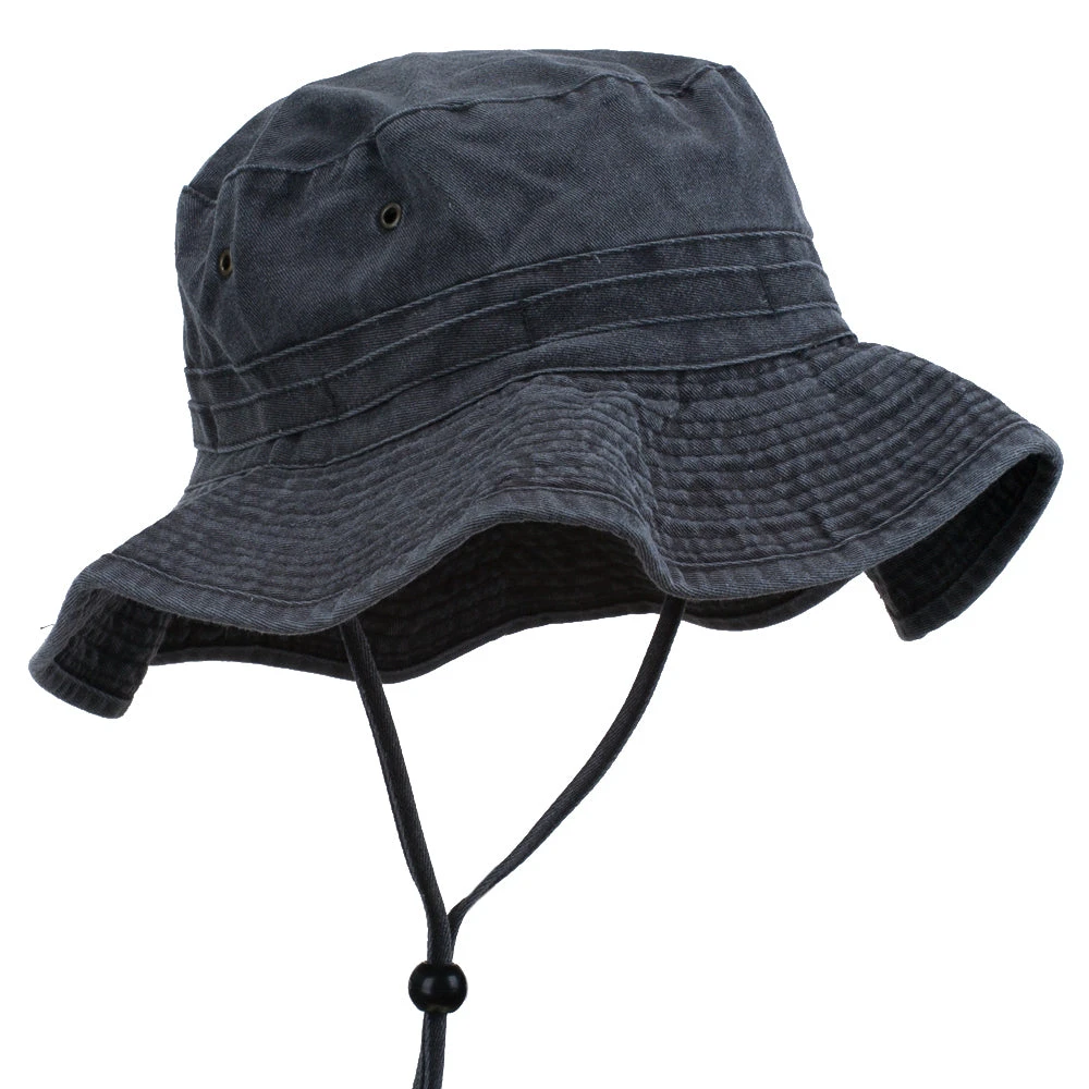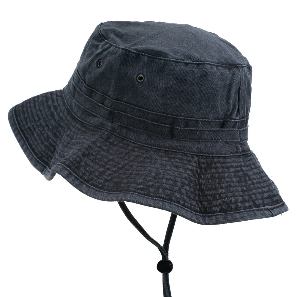 Set the sails and weigh anchor in our newFishing hat. Made from a 100% cotton this pigment dyed twill bucket cap is ideal for next fishing adventure at sea or even in a near by stream. Featuring a3″ wide brim and a 3 1/2″ high crown with bullet belt, this hat will protect you from the early morning rays and the water’s spray as you wrangle your catch of the day. For added comfortable and durability, our hat also sportsventilation holes on the crown to promote circulation and an adjustable side snap chin cord, allows you to choose the perfect fit for your comfort. Fully flexible, boasting a roll up shape perfect for those on the go and great for stuffing in your suitcase. Don’t be caught without one or you may be vistin’ Davey Jones’ Locker sooner than you think!