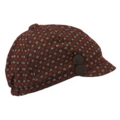 Two button accented cabbie hat with two colored squares design for ladies.
