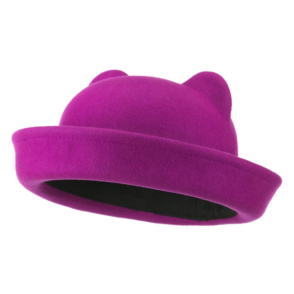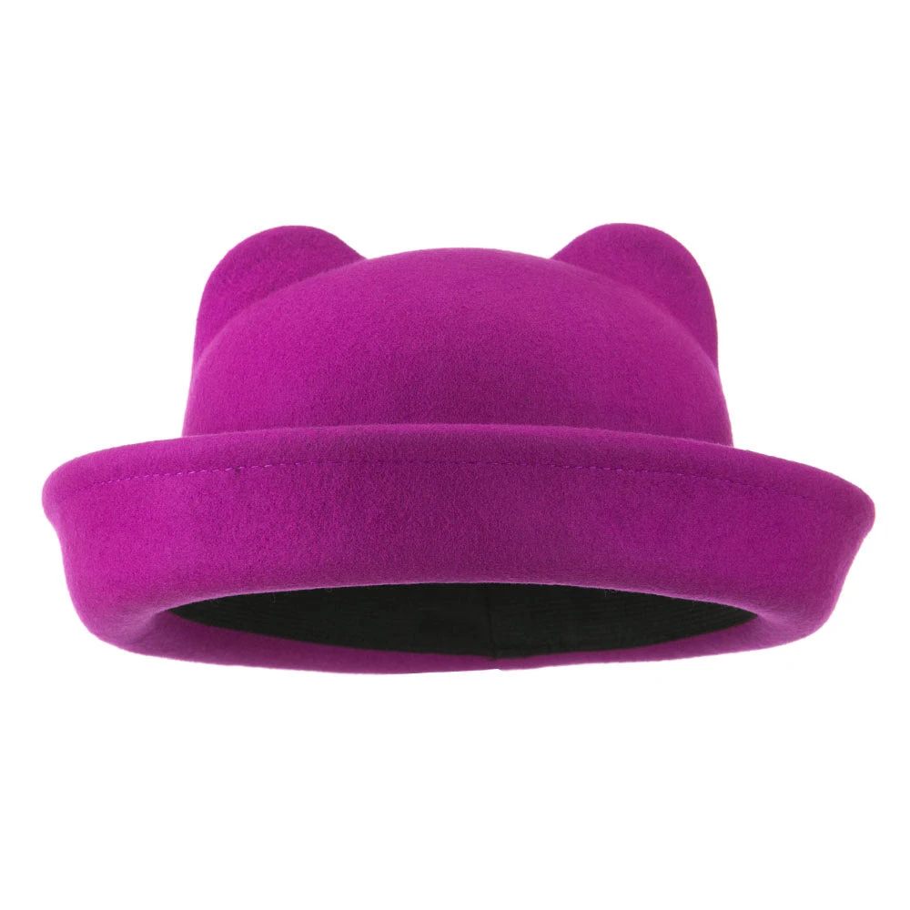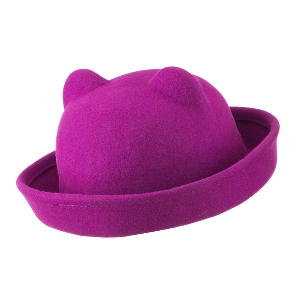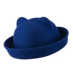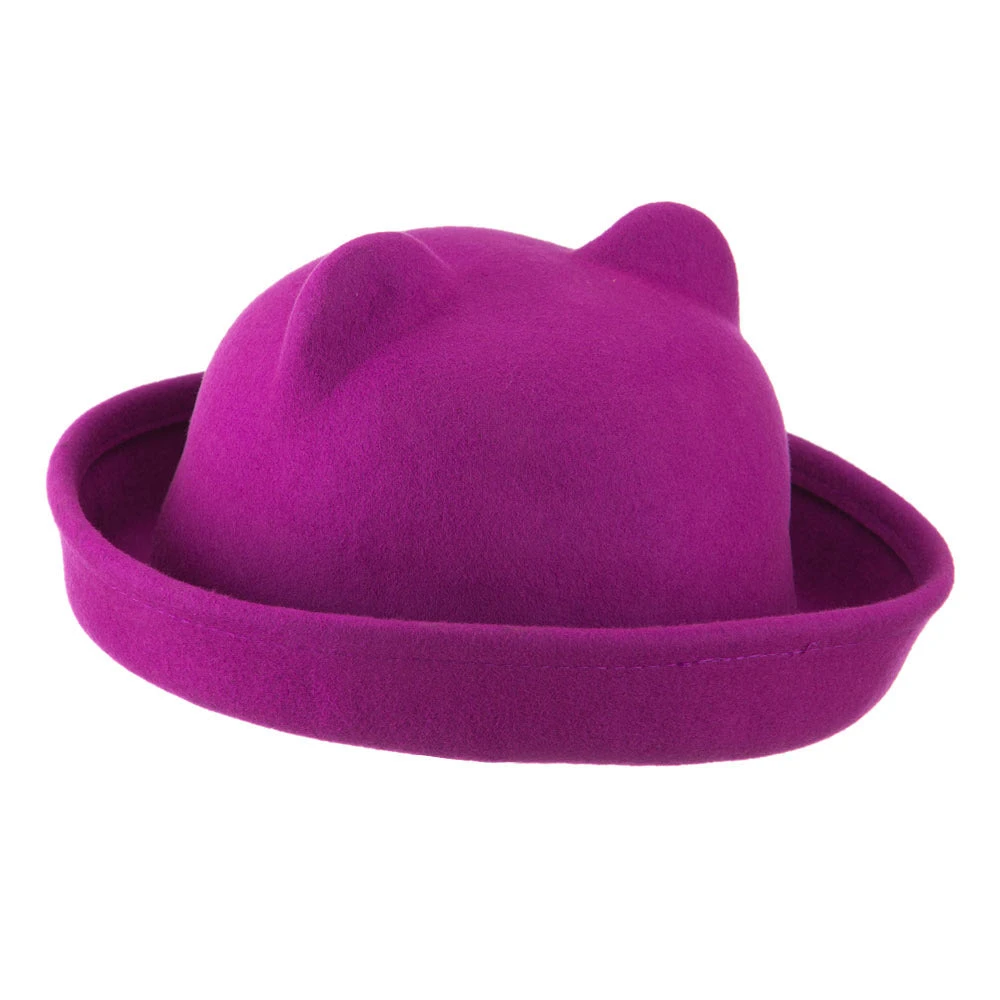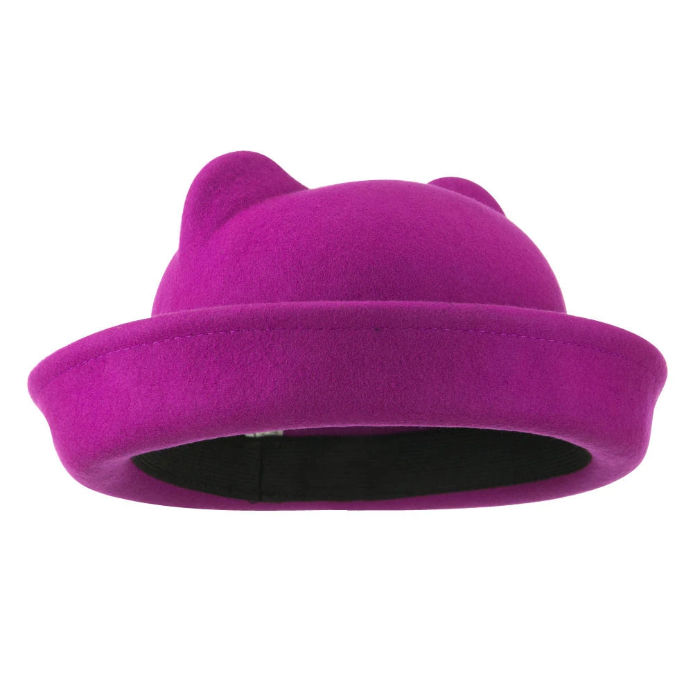 Solid in color, ear crown wool felt bowler fedora for your little girls.