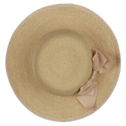 Crown is solid colored and accented by a ribbon bow hat band.