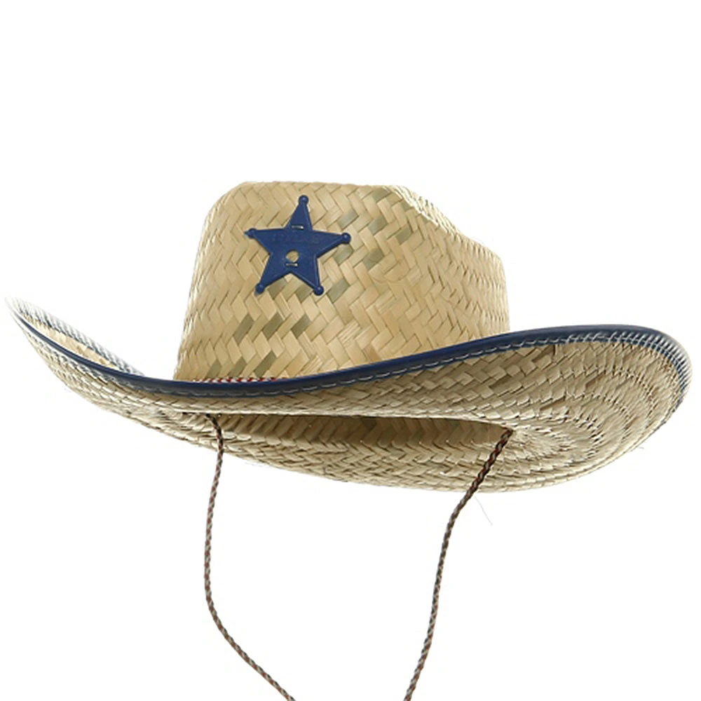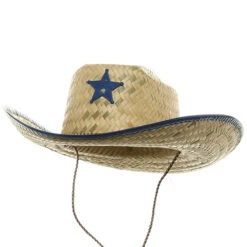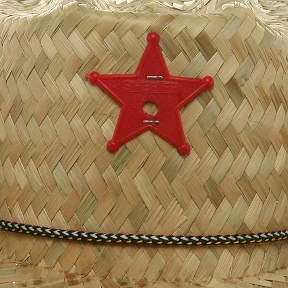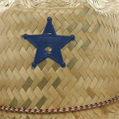 Is your child dreaming of becoming a cowboy sheriff?Then this Natural Straw Sheriff Hat is perfect for your kids.It’s made from 100% straw, measuring 3-1/2 inches deep with brim measuring 3 inches wide with colored vinyl edge.At the front of the crown it has a plastic sheriff star badge patched on to it.It also features a chin string to prevent the hat from falling off of your kids’ head while they chase the bank robbers away into the desert.
