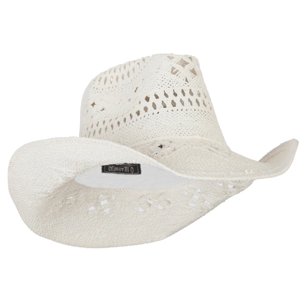 Bring out our Solid Color Straw Cowboy Hat for your next summer outing! Our paper straw cowboy hat completes your cowboy outlook for costume events or other summer adventures. This vented straw cowboy hat keeps your head in cool condition at all times even in hot summer days. Inside of hat is fitted with an elastic sweat band to keep your head dry and comfortable during your activities. What is a unique feature about this hat is that brim on both sides is rolled up. Crown of hat is also featured with a thin ribbon string band for its added style. This durable and cool paper cowboy hat comes in other fashion colors as well, so you can choose your favorite one.