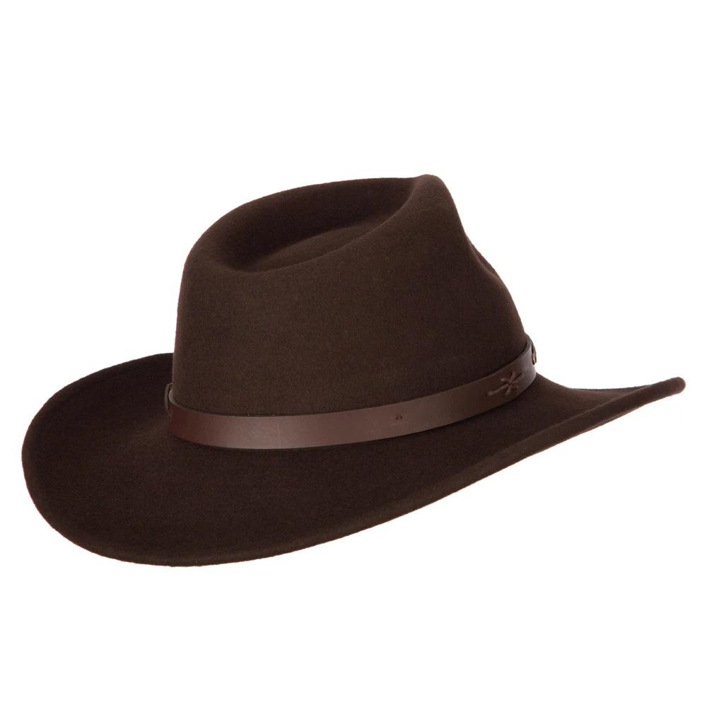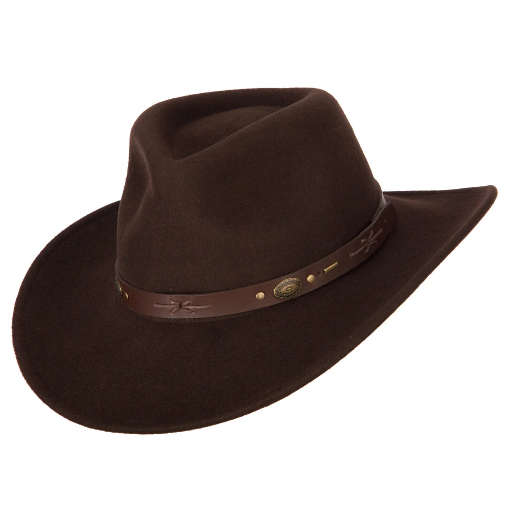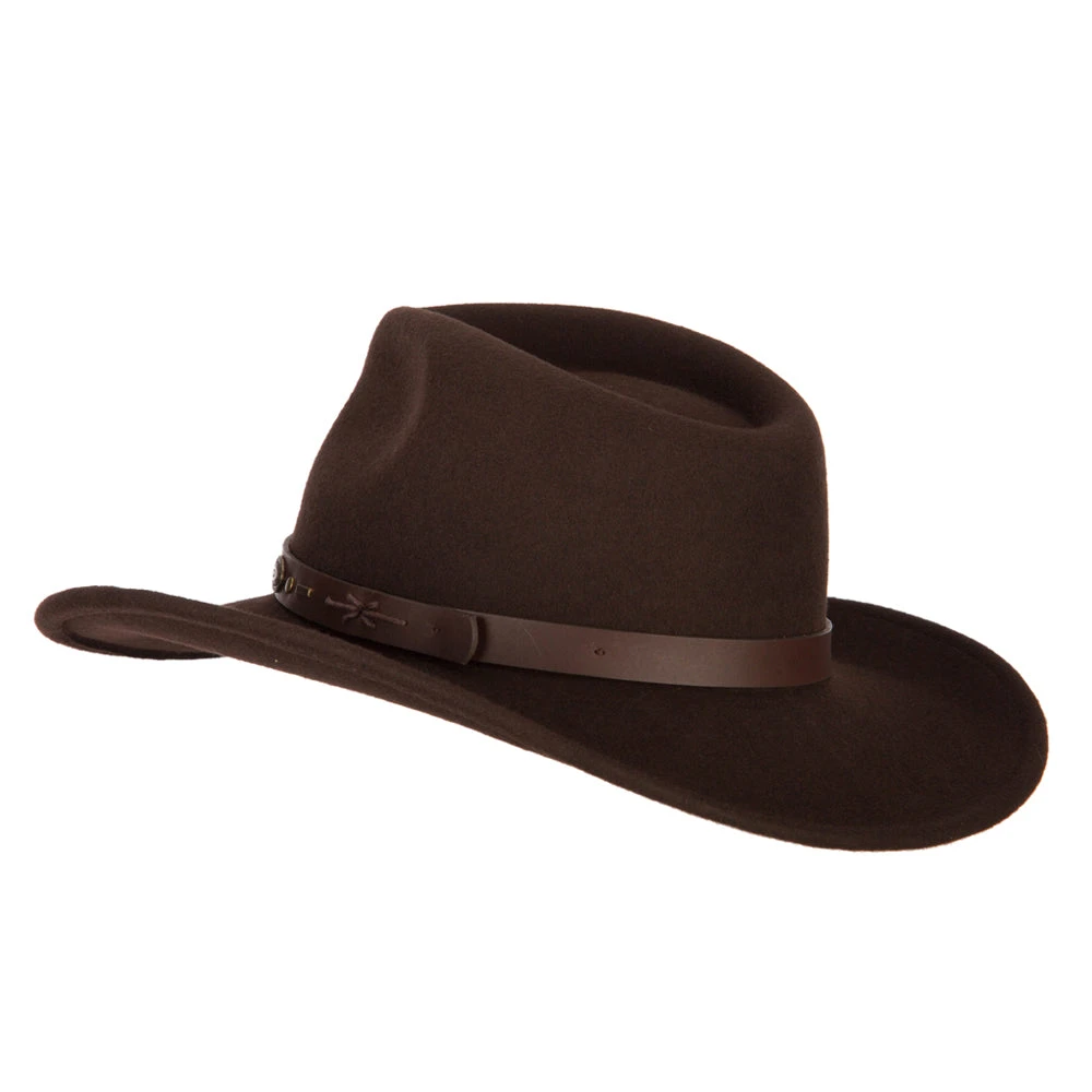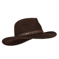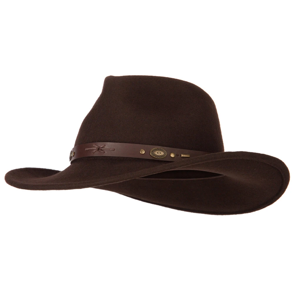 Unisex Brass Accented Leather Band Pinched Fedora Crown Outback Hat