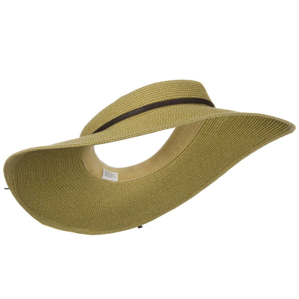 OurTweed UPF50+ Crownless 4 Inch Wide Brim Visor with leather self tie is wonderful summer sun hat for ladies that not only keeps you look great but also offers you amazing sun protection. This crownless visor hat embodies all the comfort and style of a traditional visor with a flare of far away fun. This UPF 50+ wide brim visor offers you maximum protection from hot sun in summer and the brim blocks both UVA and UVB. This ladies visor hat comes in one size and visor is fitted with elastic terry sweat band inside, so this hat will keep you dry even in hot summer. For added style that gives you more of ladylike look, crown of hat is accented with ribbon leather self tie hat band. Do not forget to take this wonderful UPF 50+ crownless wide brim visor for your next summer vacations. Available in 4 different colors.