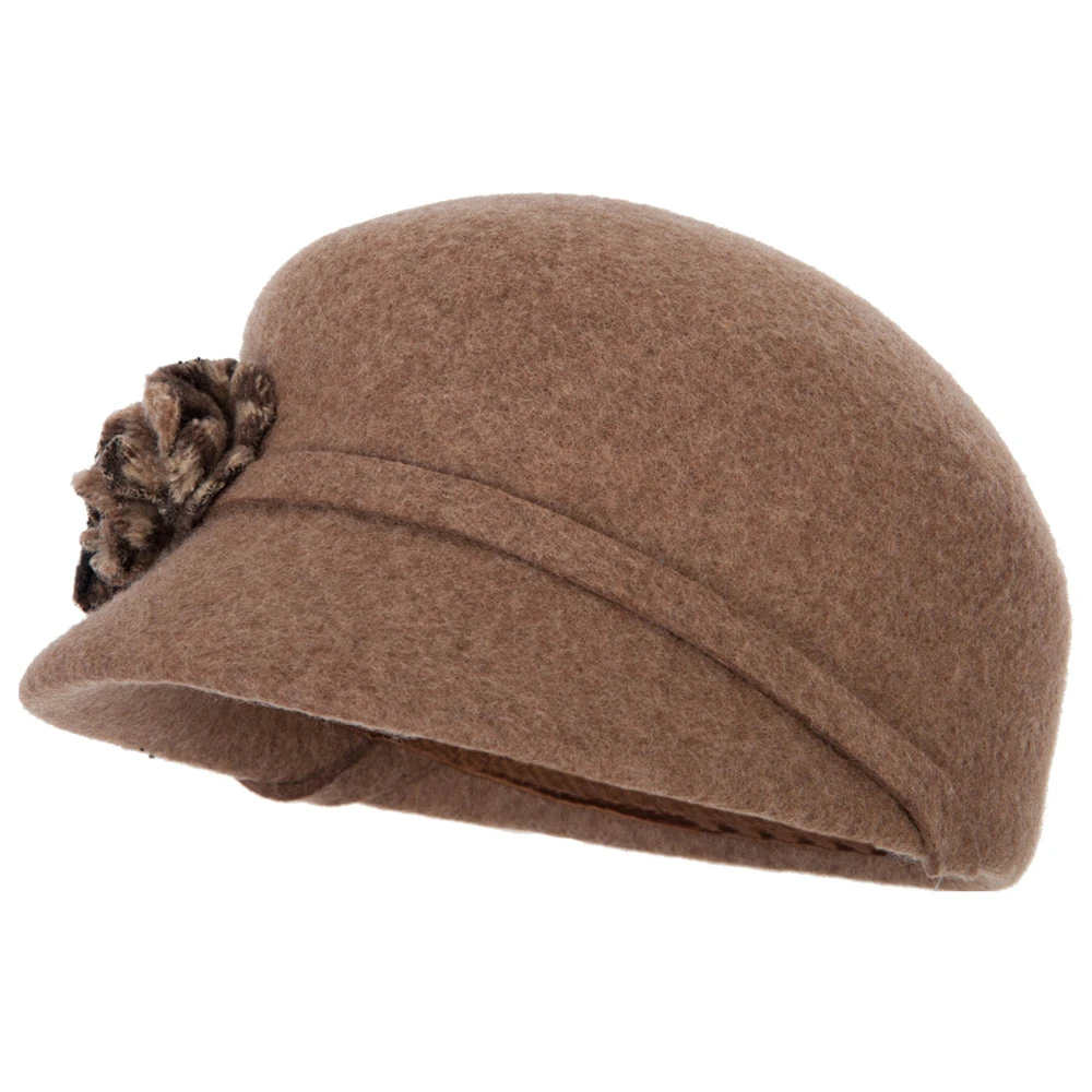 Women’s Flower Detailed Band Accented Short Brim Newsboy Cap Style Hat