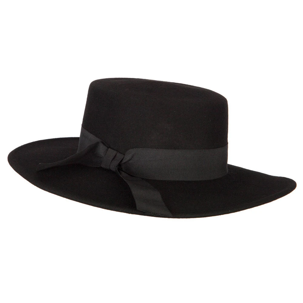 Women’s Wool Felt Wide Grosgrain Ribbon Band Bolero Fedora Hat