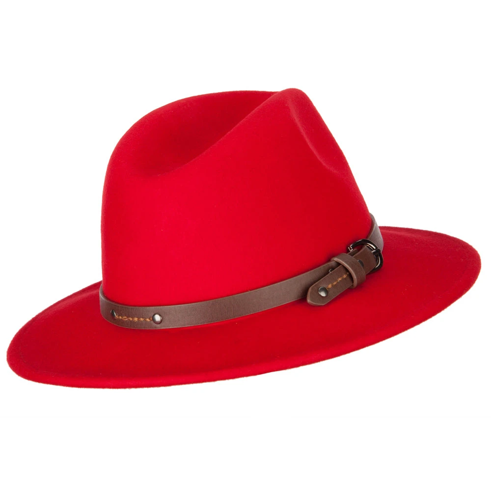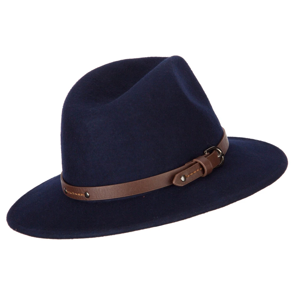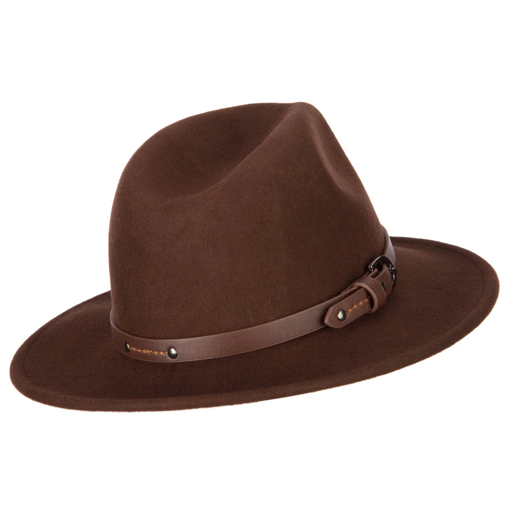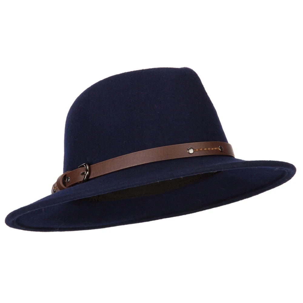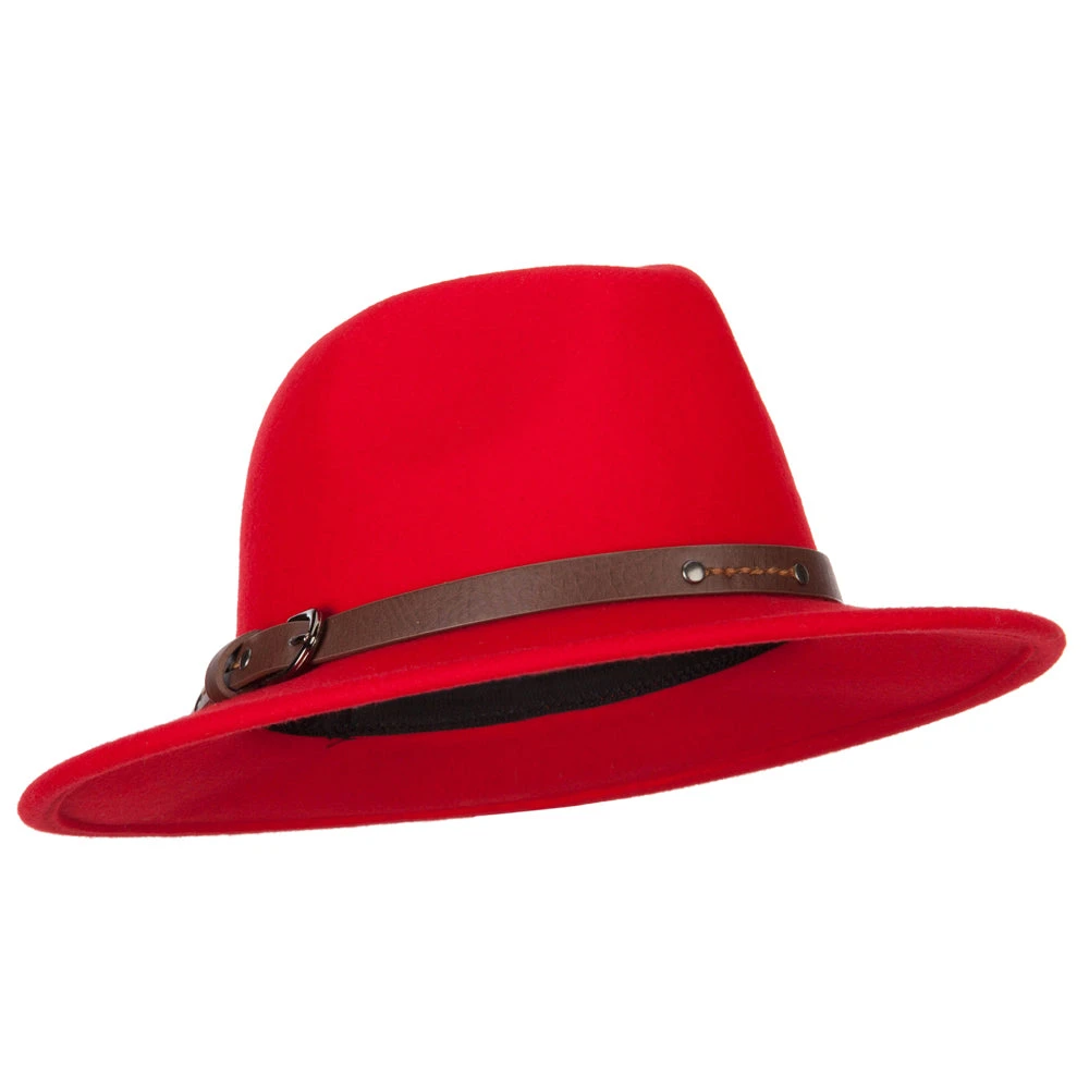 Women’s Wool Leatherette Buckle Band Accented Large Brim Fedora Hat