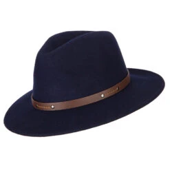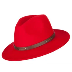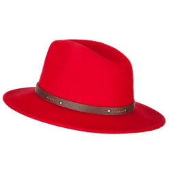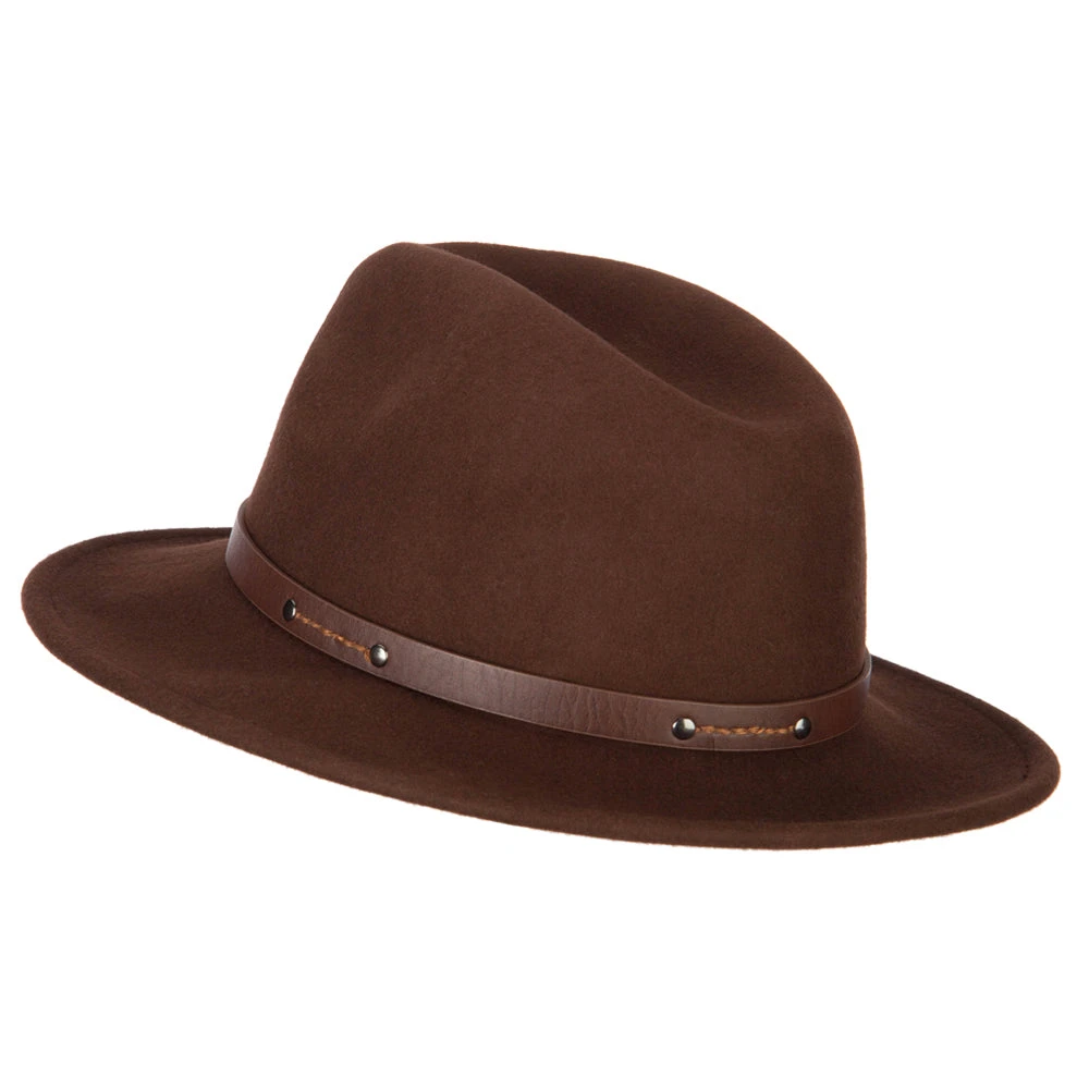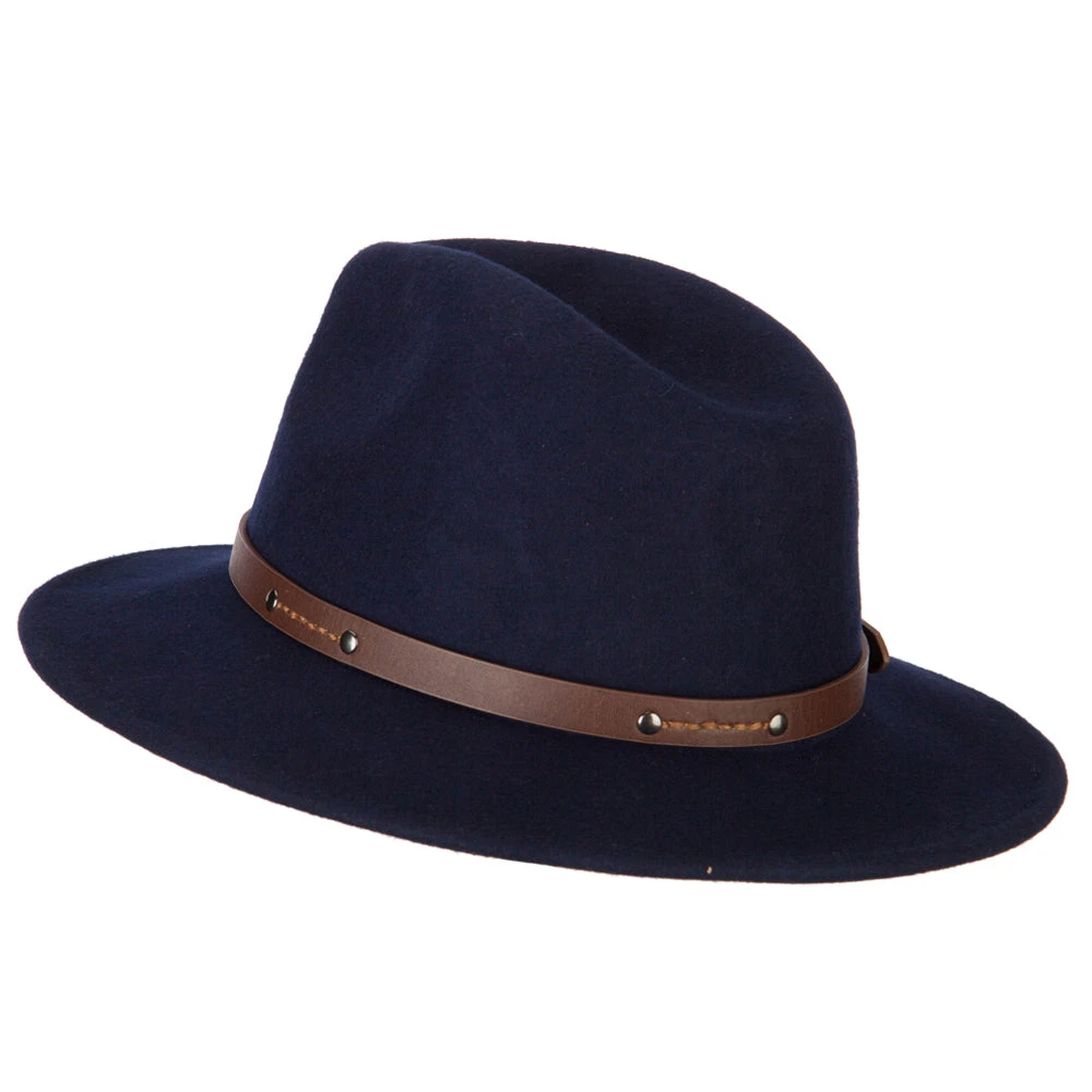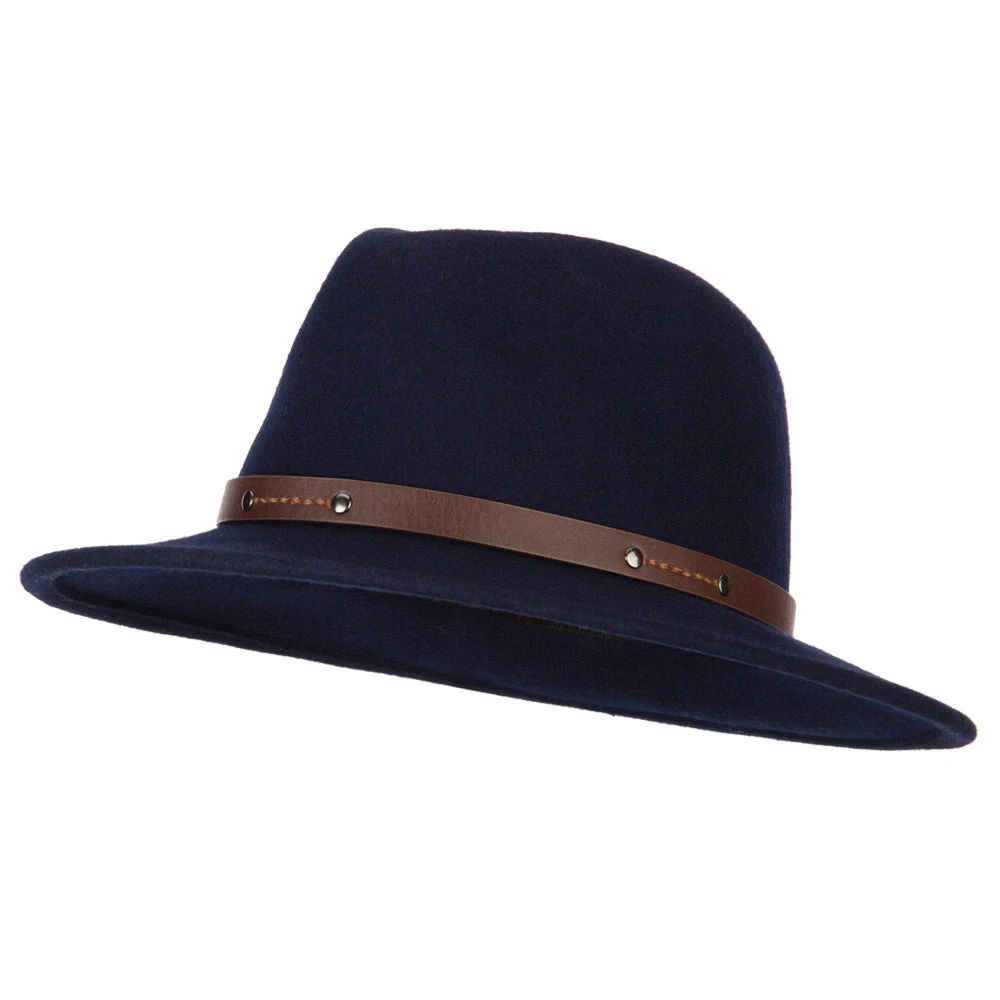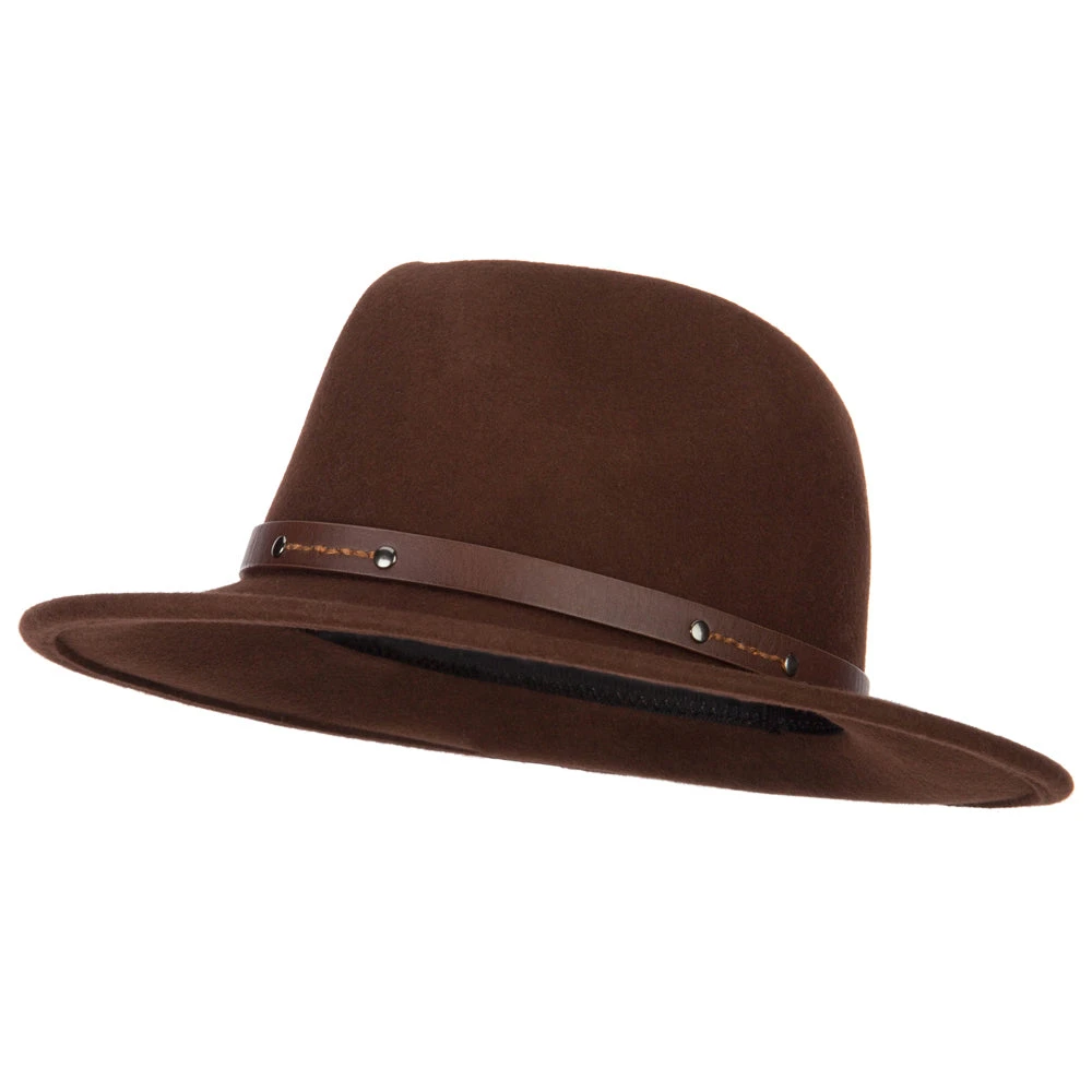 Women’s Wool Leatherette Buckle Band Accented Large Brim Fedora Hat