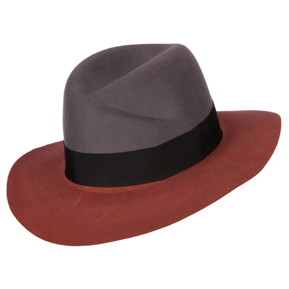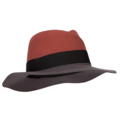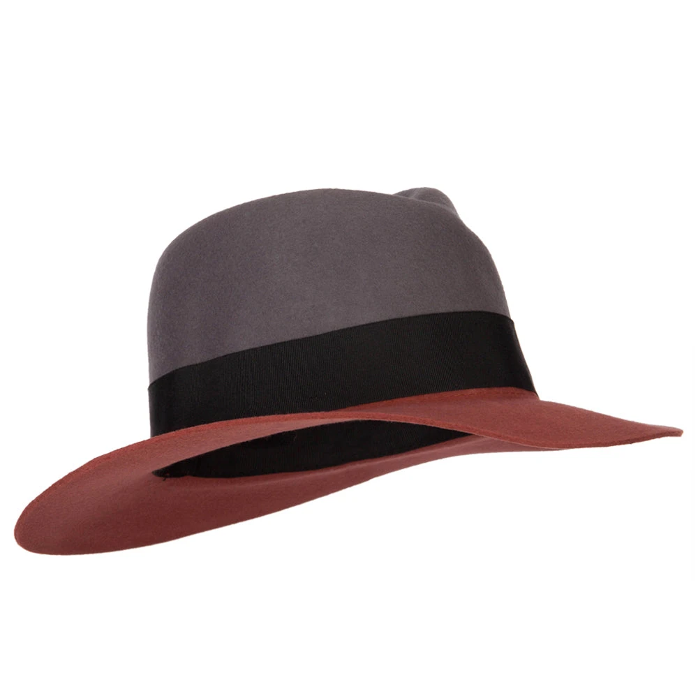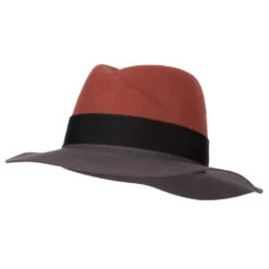 Women’s Wool Wide Grosgrain Ribbon Band Trim Creased Crown Fedora Hat